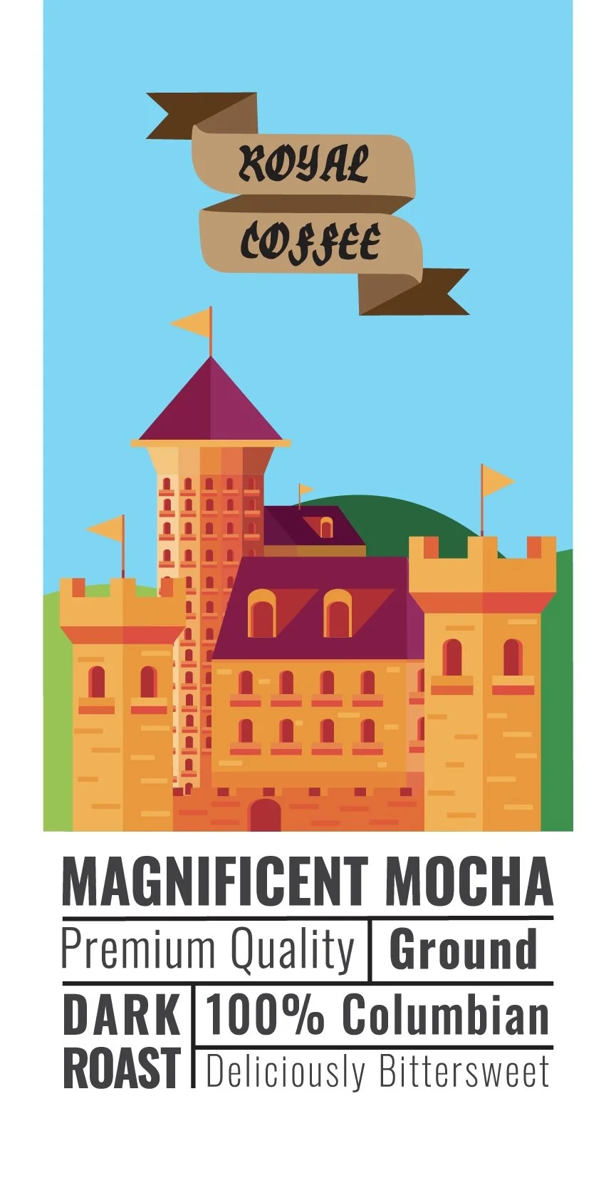 I created this packaging for Royal Coffee, making a digital illustration of a castle as the centerpiece of the visual identity. The project involved integrating the illustration with typography, color palettes, and layout to produce a cohesive, eye-catching package that communicates quality and personality. The design is optimized for product labeling while maintaining clarity, visual hierarchy, and shelf appeal.
